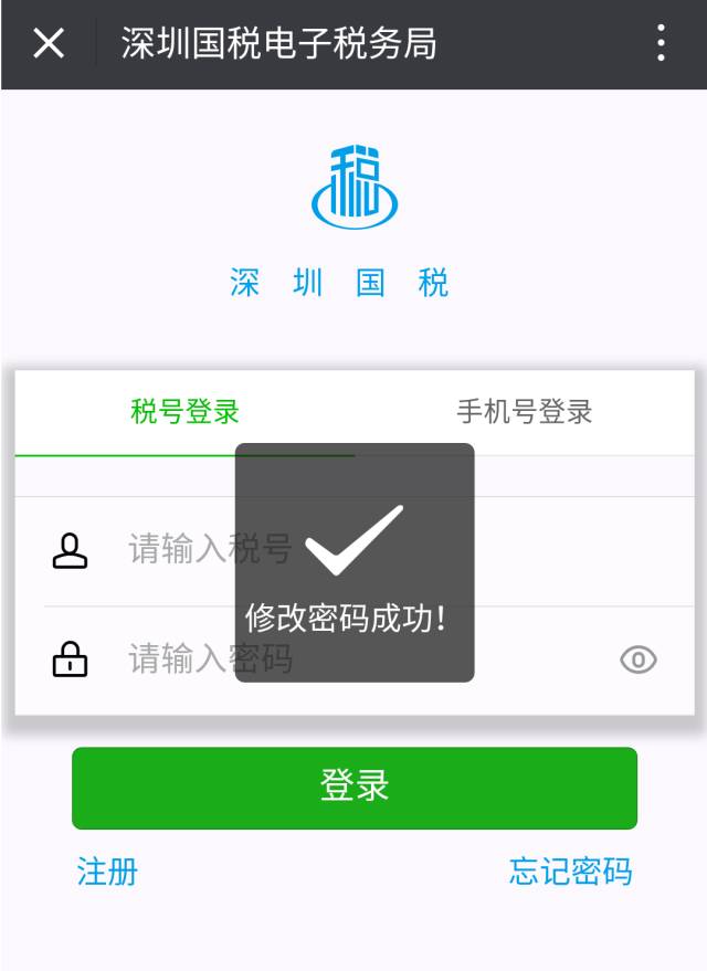 对于遗忘登陆密码的纳税人,可通过首页“忘记密码”功能,输入注册手机号与验证码进行验证